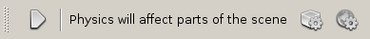 Step 2: Press the Start icon to activate the simulation. The message Physics is running on parts of the scene appears. All products selected in step 1 will be affected by the physics. Press the Stop icon to interrupt the simulation.